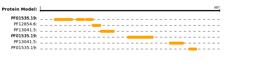 | Pfam accession | Pfam name | Alignment start | Alignment end | E-value |