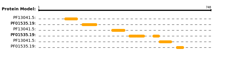 | Pfam accession | Pfam name | Alignment start | Alignment end | E-value |